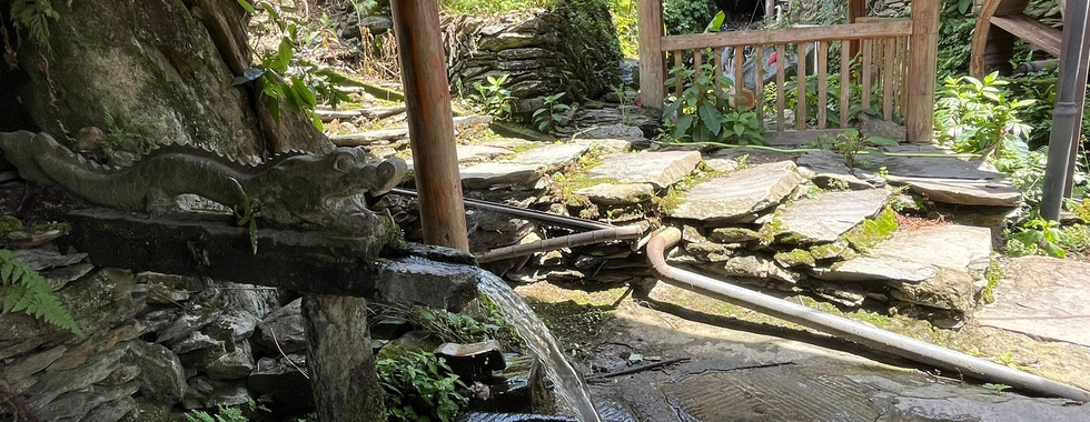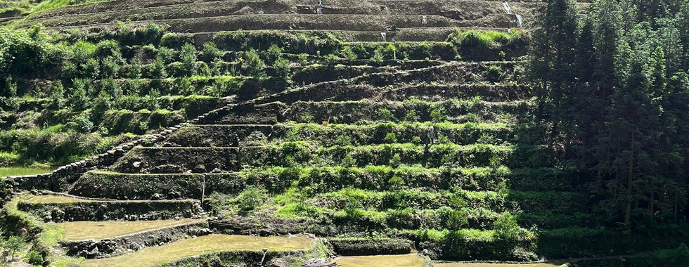 The next morning greeted us with sunshine, apparently a rare treat in this region. After a hearty breakfast at the hotel, we set off on our own to explore the rice terraces. It was late May and, judging by the landscape, the fields were still in their dormant phase. Filled with water, patiently waiting for planting season, they looked like tarnished antique mirrors, their surface blurred by time. A few locals were out tending the terraces, repairing and shaping the centuries-old structures.