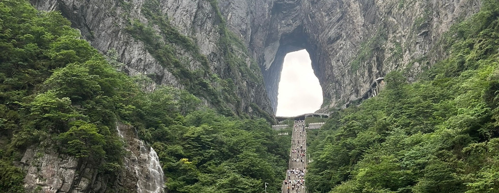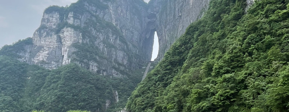 Our second day was self-guided and we were up for the challenge. As travellers who usually plan our own adventures, we felt right at home plotting our next move. We decided to visit Tianmen Mountain (天门山), part of the Tianmen Mountain National Park. Its name literally means “Heaven’s Gate Mountain”, taken from its massive arch-shaped cave. On rare mornings, sunlight pierces through this natural opening, forming what looks like a golden path to the heavens. Sadly, our timing (well past sunrise) and the weather (a thick cloud cover) didn’t corroborate for us to witness that celestial spectacle.