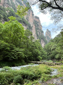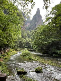 We weren’t quite done for the day though. The final leg of our tour took us along the Golden Whip Stream (Jinbianxi) Trail, also part of Zhangjiajie National Park. Seeing the towering peaks from below offered a whole new perspective. While their tops reached boldly for the sky, their bases felt much more grounded, literally and figuratively. Surrounded by lush spring greenery, with a clear stream carving through rock and soft light filtering through the trees, the place felt peaceful and anchoring.