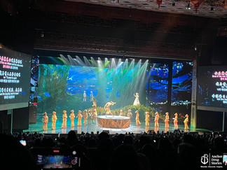 Conveniently located just across from our restaurant was the Zhangjiajie Grand Theatre, where we had tickets for the long-running Charming Xiangxi Show. This large-scale production brings to life the folkloric diversity of the Hunan province with an impressive mix of traditional costumes, music, dancing, and acrobatics. For a bit of context: China recognises 56 ethnic groups, with the Han ethnic group making up over 90% of the population. The rest of 55 are considered ethnic minorities.