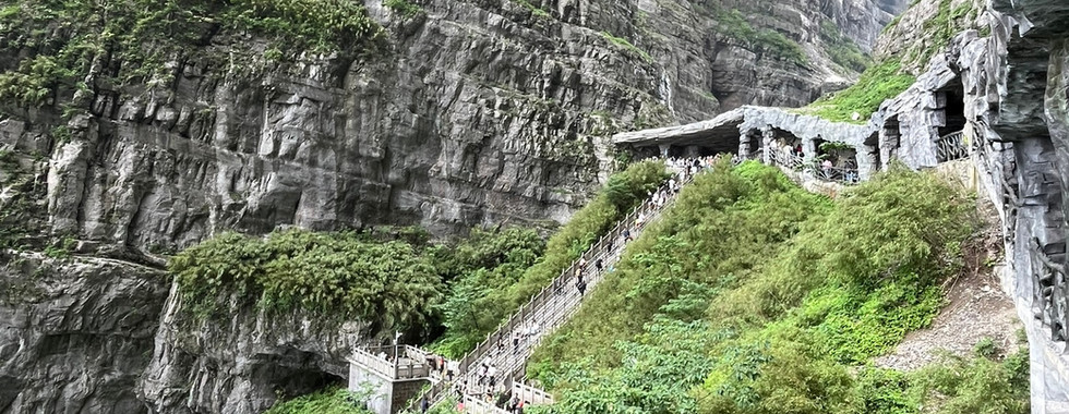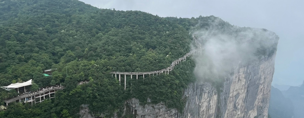 Tianmen Mountain does have several short glass Skywalk paths built along its cliffs, which we did find, but the actual Glass Bridge, also known as the Skywalk Bridge, is located in the Zhangjiajie National Forest Park, quite a distance away. Oh well, something for next time!