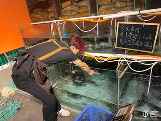 Speaking of fresh, the fish was very much alive when we first met it. They chose it from one of the restaurant’s tanks, based on how many people were dining, and they weighed it right there. Impressively, they nailed the weight estimate. Kind of… tank to table.