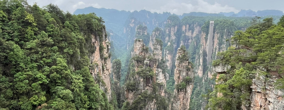 As our heavenly tour drew to a close, we still had one final marvel to experience, this time a man-made one. We descended the mountain via the world’s tallest outdoor elevator: the Bailong Elevator (百龙天梯), literally translating to “The One Hundred Dragons Elevator” . Partially embedded in the rock face, the glass box really speeds down, too quickly for me as I would’ve liked a little more time to observe the mountain cliff closer.