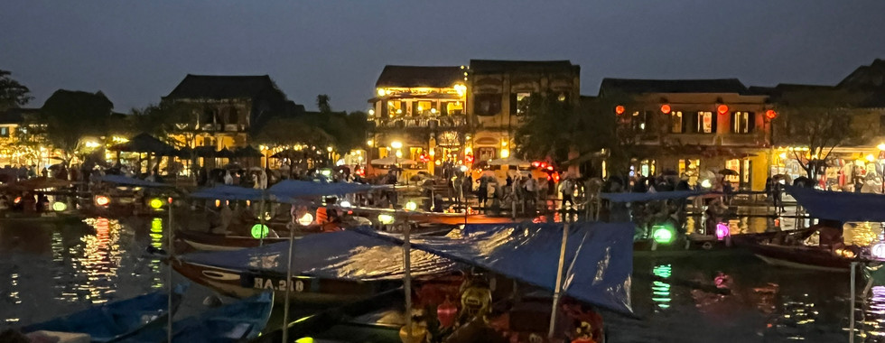 As usual, we had the evening to ourselves and set off for another stroll through the Old Quarter. By night, the city felt completely transformed. The explosion of colourful lanterns, vibrant lights, and bustling crowds gave it an almost magical vibe. Also, it felt more of a water town, as the narrow arm of the Thu Bon River was alive with cruising boats, glowing bridges adorned with lit decorations, and people setting wish lanterns afloat.